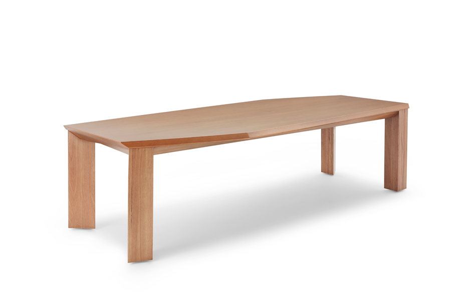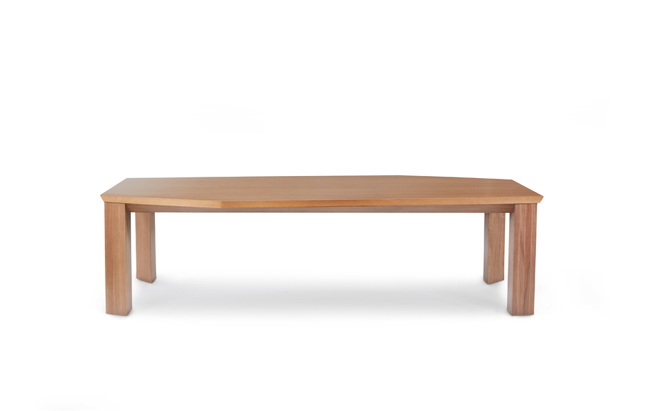 C452 é uma mesa de jantar lapidada para a socialização durante seu uso. A estrutura em madeira maciça e o desenho irregular